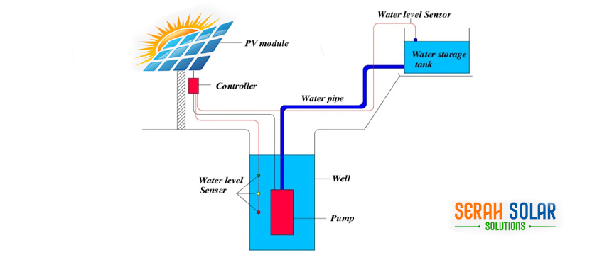 A solar pump is an eco-friendly and cost-effective solution that consists of key components like a solar panel, water pump, electric motor, and controller. It operates using solar energy converted into electricity through photovoltaic panels—similar to solar rooftop systems. The generated electricity powers the motor, which drives the pump through a rotating shaft, drawing water from underground sources and delivering it to fields or storage systems.